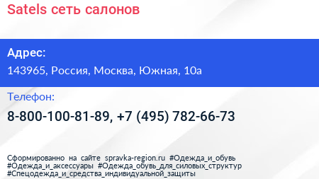 Satels, сеть салонов по адресу 143965, Россия, Москва, Южная, 10а в дальнейшем Организация, размещена в следующих категориях: