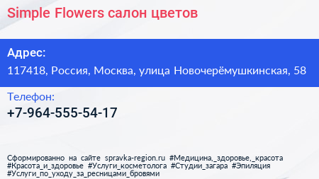Simple Flowers, салон цветов по адресу 117418, Россия, Москва, улица Новочерёмушкинская, 58 в дальнейшем Организация, размещена в следующих категориях: