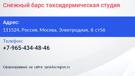 Снежный барс, таксидермическая студия по адресу 111524, Россия, Москва, Электродная, 8 ст56 в дальнейшем Организация, размещена в следующих категориях: