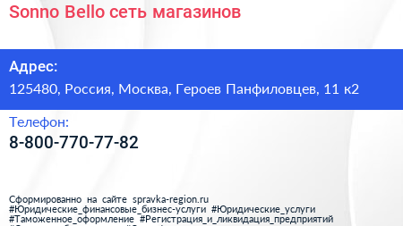 Sonno Bello, сеть магазинов по адресу 125480, Россия, Москва, Героев Панфиловцев, 11 к2 в дальнейшем Организация, размещена в следующих категориях: