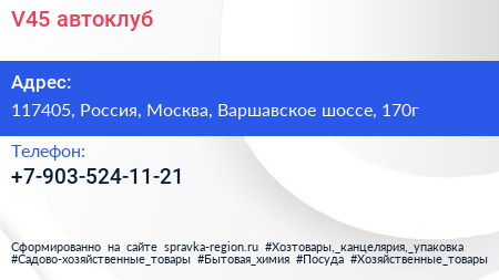V45, автоклуб по адресу 117405, Россия, Москва, Варшавское шоссе, 170г в дальнейшем Организация, размещена в следующих категориях: