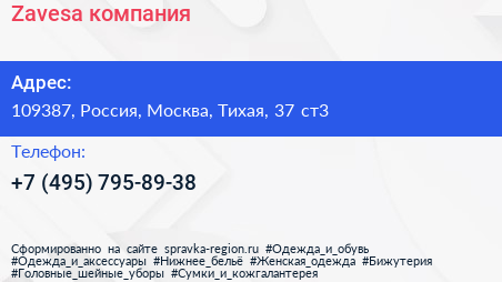 Zavesa, компания по адресу 109387, Россия, Москва, Тихая, 37 ст3 в дальнейшем Организация, размещена в следующих категориях: