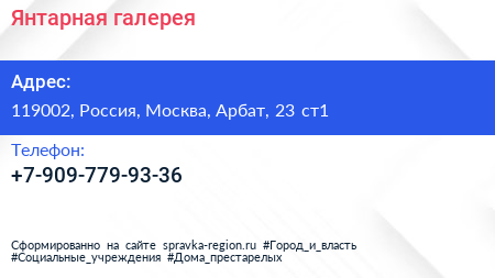 Янтарная галерея по адресу 119002, Россия, Москва, Арбат, 23 ст1 в дальнейшем Организация, размещена в следующих категориях: