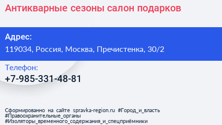 Антикварные сезоны, салон подарков по адресу 119034, Россия, Москва, Пречистенка, 30/2 в дальнейшем Организация, размещена в следующих категориях: