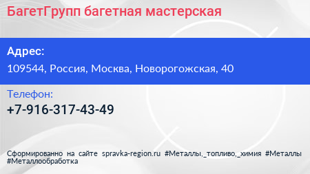 БагетГрупп, багетная мастерская по адресу 109544, Россия, Москва, Новорогожская, 40 в дальнейшем Организация, размещена в следующих категориях: