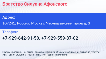 Братство Силуана Афонского по адресу 107241, Россия, Москва, Черницынский проезд, 3 в дальнейшем Организация, размещена в следующих категориях: