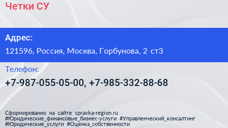 Четки.СУ по адресу 121596, Россия, Москва, Горбунова, 2 ст3 в дальнейшем Организация, размещена в следующих категориях: