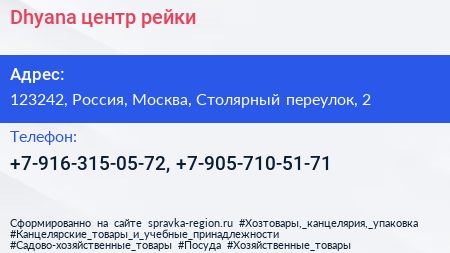 Dhyana, центр рейки по адресу 123242, Россия, Москва, Столярный переулок, 2 в дальнейшем Организация, размещена в следующих категориях: