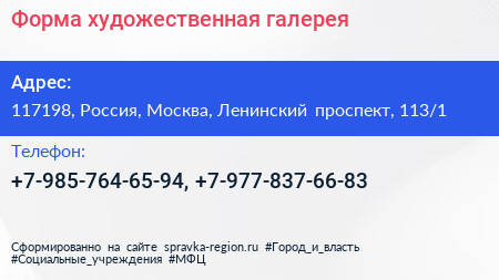 Форма, художественная галерея по адресу 117198, Россия, Москва, Ленинский проспект, 113/1 в дальнейшем Организация, размещена в следующих категориях: