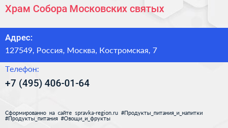 Храм Собора Московских святых по адресу 127549, Россия, Москва, Костромская, 7 в дальнейшем Организация, размещена в следующих категориях: