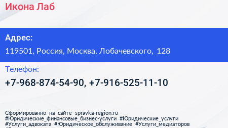 Икона-Лаб по адресу 119501, Россия, Москва, Лобачевского, 128 в дальнейшем Организация, размещена в следующих категориях: