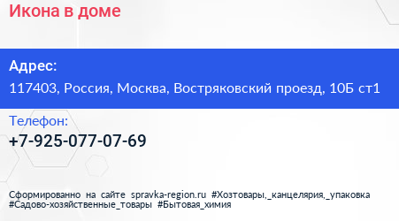 Икона в доме по адресу 117403, Россия, Москва, Востряковский проезд, 10Б ст1 в дальнейшем Организация, размещена в следующих категориях: