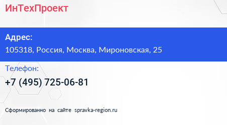 ИнТехПроект по адресу 105318, Россия, Москва, Мироновская, 25 в дальнейшем Организация, размещена в следующих категориях: