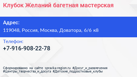 Клубок Желаний, багетная мастерская по адресу 119048, Россия, Москва, Доватора, 6/6 к8 в дальнейшем Организация, размещена в следующих категориях: