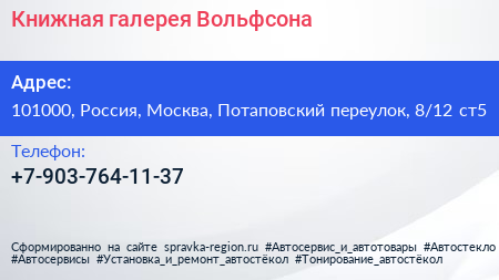 Книжная галерея Вольфсона по адресу 101000, Россия, Москва, Потаповский переулок, 8/12 ст5 в дальнейшем Организация, размещена в следующих категориях: