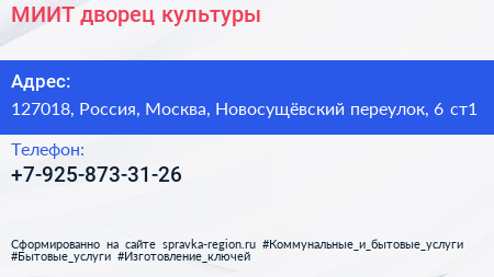 МИИТ, дворец культуры по адресу 127018, Россия, Москва, Новосущёвский переулок, 6 ст1 в дальнейшем Организация, размещена в следующих категориях: