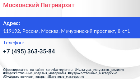 Московский Патриархат по адресу 119192, Россия, Москва, Мичуринский проспект, 8 ст1 в дальнейшем Организация, размещена в следующих категориях: