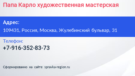 Папа Карло, художественная мастерская по адресу 109431, Россия, Москва, Жулебинский бульвар, 31 в дальнейшем Организация, размещена в следующих категориях: