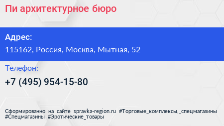 Пи, архитектурное бюро по адресу 115162, Россия, Москва, Мытная, 52 в дальнейшем Организация, размещена в следующих категориях: