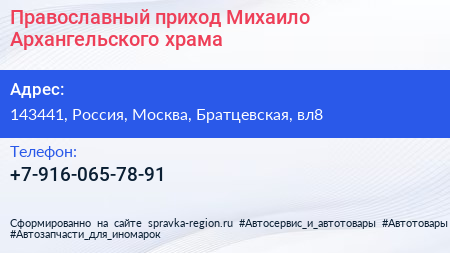 Православный приход Михаило-Архангельского храма по адресу 143441, Россия, Москва, Братцевская, вл8 в дальнейшем Организация, размещена в следующих категориях:
