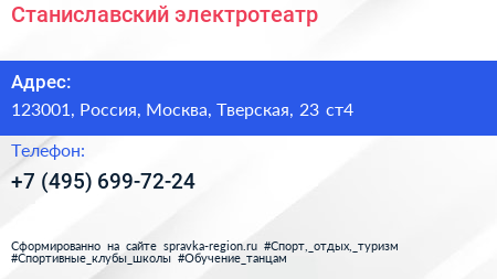 Станиславский, электротеатр по адресу 123001, Россия, Москва, Тверская, 23 ст4 в дальнейшем Организация, размещена в следующих категориях: