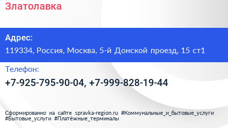 Златолавка по адресу 119334, Россия, Москва, 5-й Донской проезд, 15 ст1 в дальнейшем Организация, размещена в следующих категориях: