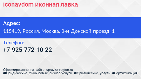 iconavdom, иконная лавка по адресу 115419, Россия, Москва, 3-й Донской проезд, 1 в дальнейшем Организация, размещена в следующих категориях:
