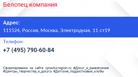 Белспец, компания по адресу 111524, Россия, Москва, Электродная, 11 ст19 в дальнейшем Организация, размещена в следующих категориях:
