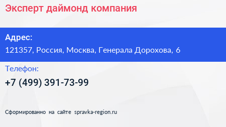 Эксперт даймонд, компания по адресу 121357, Россия, Москва, Генерала Дорохова, 6 в дальнейшем Организация, размещена в следующих категориях: