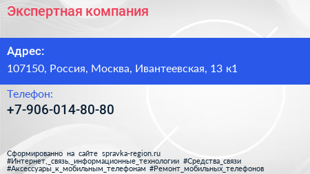 Экспертная компания по адресу 107150, Россия, Москва, Ивантеевская, 13 к1 в дальнейшем Организация, размещена в следующих категориях:
