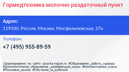 Гормедтехника, молочно-раздаточный пункт по адресу 119330, Россия, Москва, Мосфильмовская, 27а в дальнейшем Организация, размещена в следующих категориях: