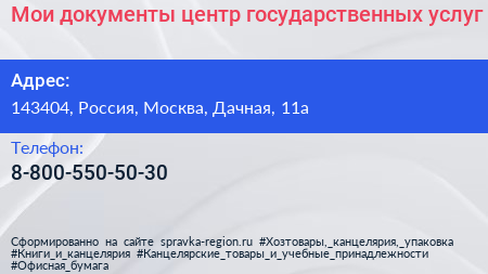 Мои документы, центр государственных услуг по адресу 143404, Россия, Москва, Дачная, 11а в дальнейшем Организация, размещена в следующих категориях: