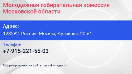 Молодежная избирательная комиссия Московской области по адресу 123592, Россия, Москва, Кулакова, 20 к1 в дальнейшем Организация, размещена в следующих категориях: