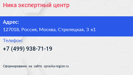 Ника, экспертный центр по адресу 127018, Россия, Москва, Стрелецкая, 3 к1 в дальнейшем Организация, размещена в следующих категориях: