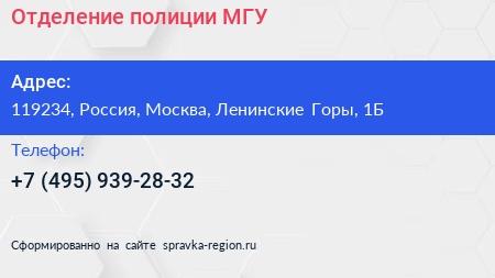 Отделение полиции, МГУ по адресу 119234, Россия, Москва, Ленинские Горы, 1Б в дальнейшем Организация, размещена в следующих категориях: