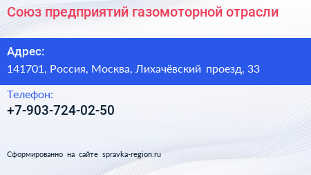 Союз предприятий газомоторной отрасли по адресу 141701, Россия, Москва, Лихачёвский проезд, 33 в дальнейшем Организация, размещена в следующих категориях: