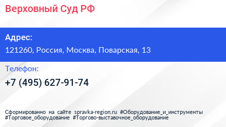 Верховный Суд РФ по адресу 121260, Россия, Москва, Поварская, 13 в дальнейшем Организация, размещена в следующих категориях: