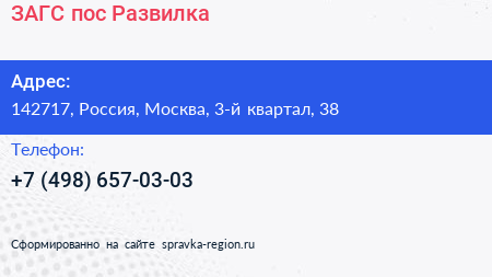 ЗАГС пос. Развилка по адресу 142717, Россия, Москва, 3-й квартал, 38 в дальнейшем Организация, размещена в следующих категориях: