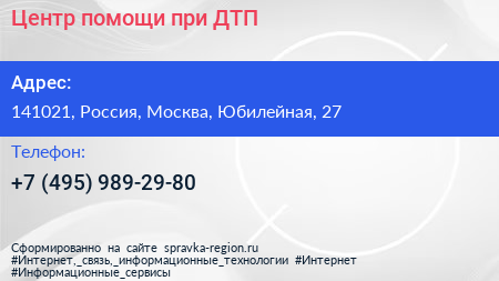 Центр помощи при ДТП по адресу 141021, Россия, Москва, Юбилейная, 27 в дальнейшем Организация, размещена в следующих категориях: