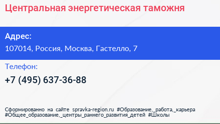 Центральная энергетическая таможня по адресу 107014, Россия, Москва, Гастелло, 7 в дальнейшем Организация, размещена в следующих категориях:
