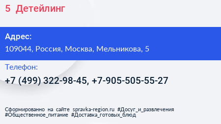 5+ Детейлинг по адресу 109044, Россия, Москва, Мельникова, 5 в дальнейшем Организация, размещена в следующих категориях: