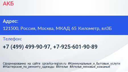 АКБ по адресу 121500, Россия, Москва, МКАД 65 Километр, вл3Б в дальнейшем Организация, размещена в следующих категориях: