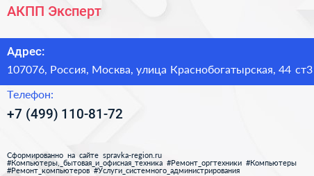 АКПП Эксперт по адресу 107076, Россия, Москва, улица Краснобогатырская, 44 ст3 в дальнейшем Организация, размещена в следующих категориях: