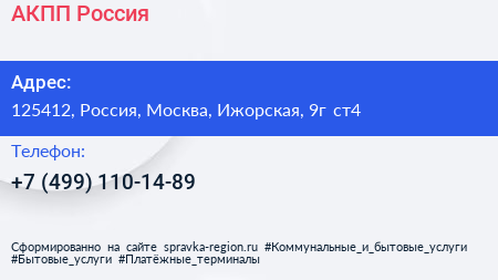 АКПП-Россия по адресу 125412, Россия, Москва, Ижорская, 9г ст4 в дальнейшем Организация, размещена в следующих категориях: