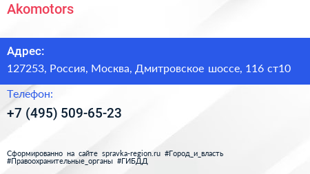 Akomotors по адресу 127253, Россия, Москва, Дмитровское шоссе, 116 ст10 в дальнейшем Организация, размещена в следующих категориях: