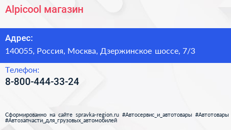 Alpicool, магазин по адресу 140055, Россия, Москва, Дзержинское шоссе, 7/3 в дальнейшем Организация, размещена в следующих категориях:
