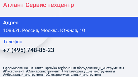 Атлант-Сервис, техцентр по адресу 108851, Россия, Москва, Южная, 10 в дальнейшем Организация, размещена в следующих категориях:
