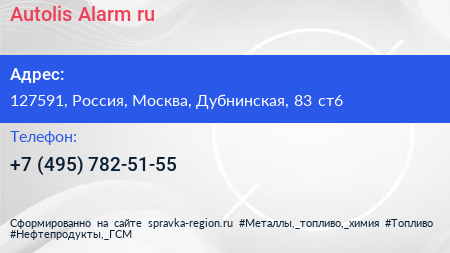 Autolis-Alarm.ru по адресу 127591, Россия, Москва, Дубнинская, 83 ст6 в дальнейшем Организация, размещена в следующих категориях: