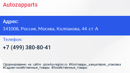Autozapparts по адресу 141008, Россия, Москва, Колпакова, 44 ст А в дальнейшем Организация, размещена в следующих категориях:
