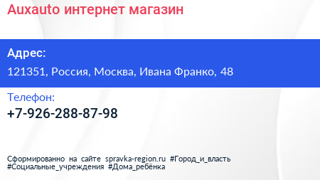 Auxauto, интернет-магазин по адресу 121351, Россия, Москва, Ивана Франко, 48 в дальнейшем Организация, размещена в следующих категориях: